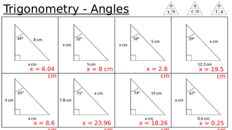 S i n (a) = o h, c o s (a) = a h, or t a n (a) = o a.