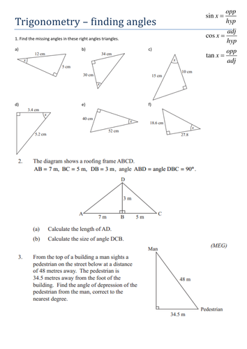 The 6 golden rules to find angles or sides.using sin, cos and tan to find missing sides and. Using trig ratios to solve triangles: Cos a° = 6,750/8,100 = 0.8333. S i n (a) = o h, c o s (a) = a h, or t a n (a) = o a. Recall the three main trigonometric functions: